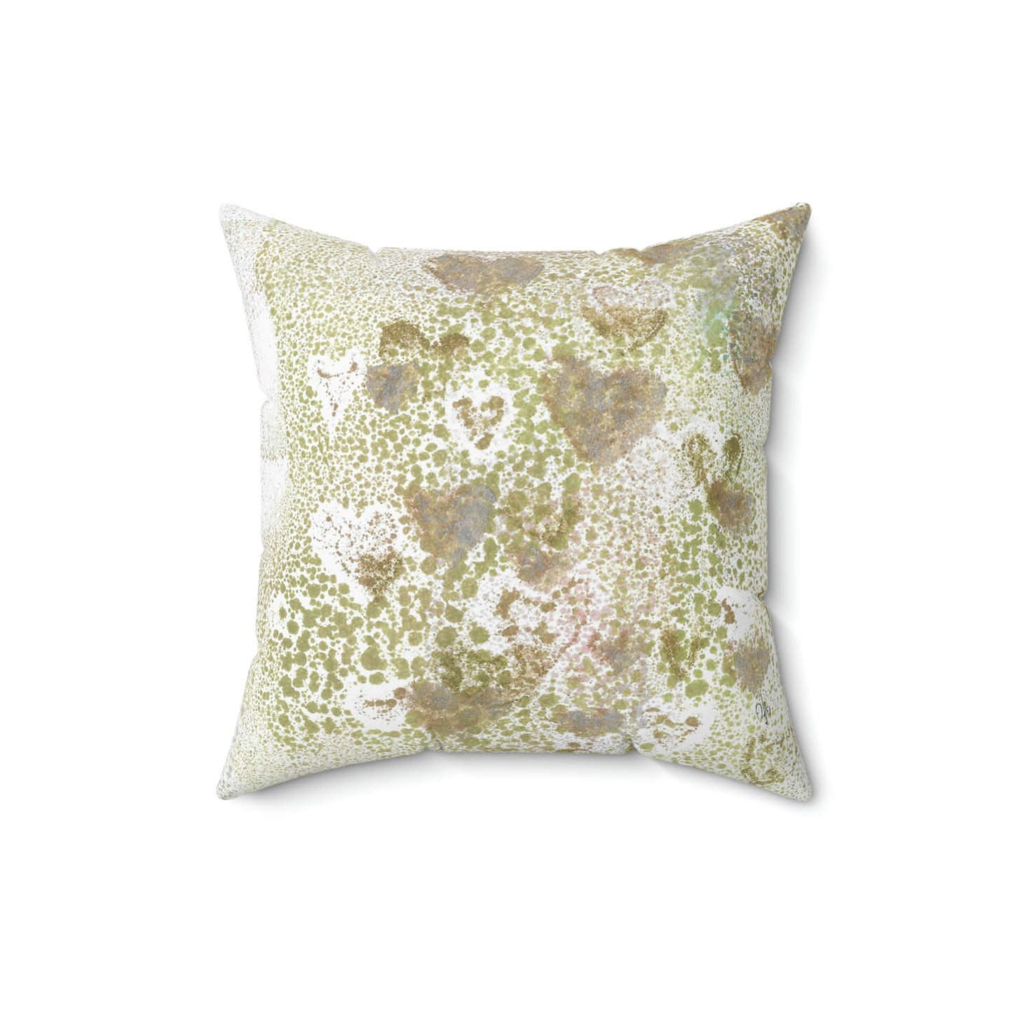 Green Hearts Square Throw Pillow